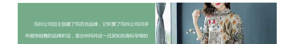 2016年,玛玲公司自主创建了玛百合品牌,它积累了玛玲公司20多年服饰销售的品牌积淀,是汾州玛玲这一吕梁知名商标孕育的产物。玛百合生活馆有着独创的经营模式,服饰风格百变多样、时尚独特,与传统服饰经营相比,能更精准的定位顾客需求并形成延续性、长期性消费,从而有着更大的利润提升空间。玛百合与上海实力服装生产厂家强强联手,所有服饰从生产到销售都是玛百合,从一线生产到顾客购买一步到位,中间没有批发环节,让顾客以出厂价购买高品质的服装。实力厂家的强大后盾,独特时尚的流行前瞻,品牌服饰的经营保障,玛百合以立足山西、辐射全国为总体规划,以汾阳总店和上海运营中心为基础,今后几年,公司将在周边市级地区开设3—5家玛百合旗舰店,扩大店铺规模的同时加强品牌的辐射力和渗透力,随后,经过几年的稳步发展,将独特时尚的“玛百合”品牌推广至全国各地。